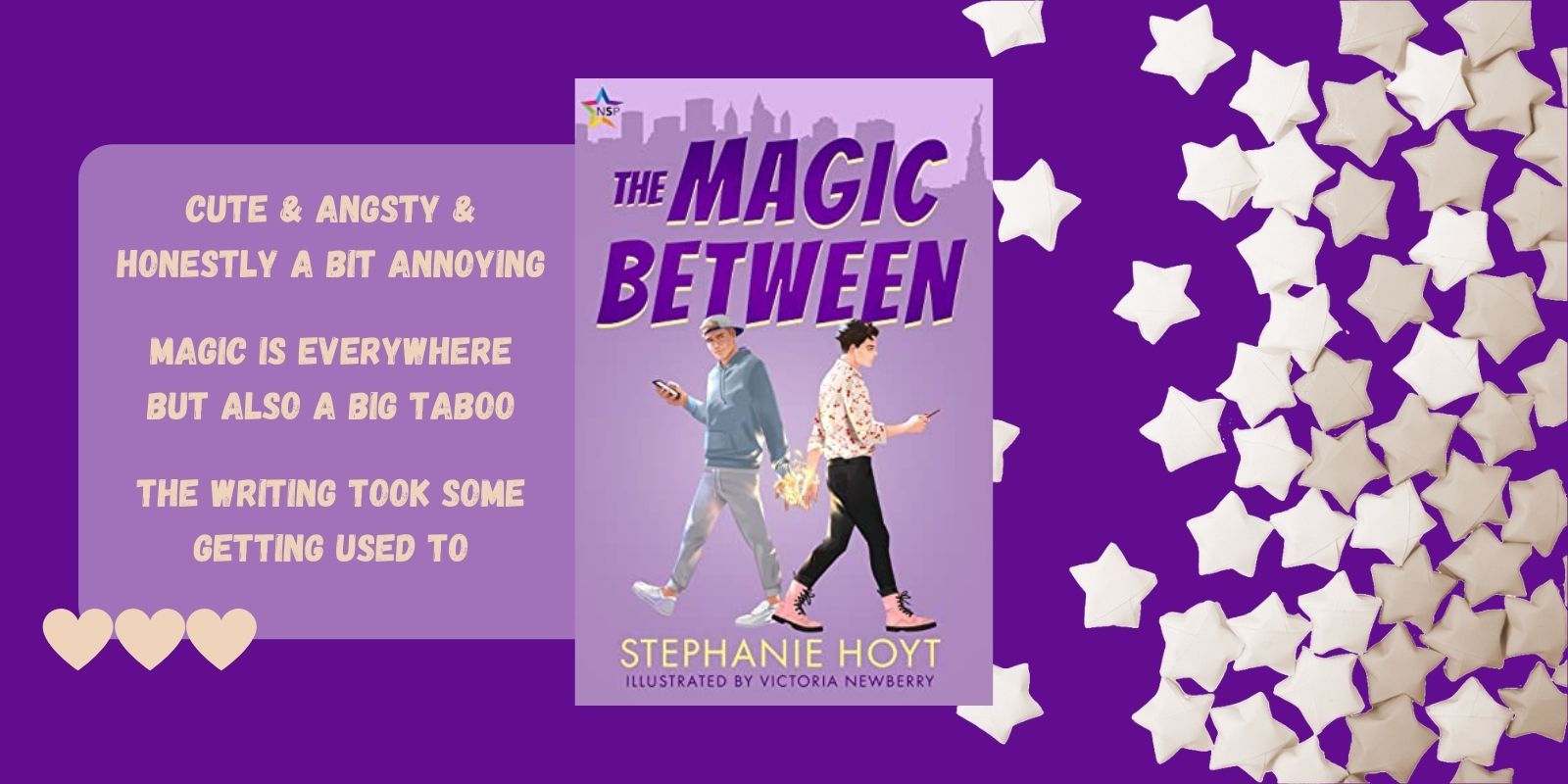 The Magic Between is set in a world in which magic is very much real and everyone has some kind of magic. Seriously, everyone has magic in this world, it is simply everywhere and there’s also a legend about how magic can create bonds between people and whatnot. But there’s also a lot of taboo and whatnot around actually showing off your magic and while the author did try to explain not only the kinds of magic that exist but also why there’s this stigma on practicing magic publicly in a very infodumpy intro, I was still left somewhat confused and sceptical. Seriously, why is displaying your magic such a big deal if everyone has it and a bunch of people have to publicly announce what kind of magic they have anyways?